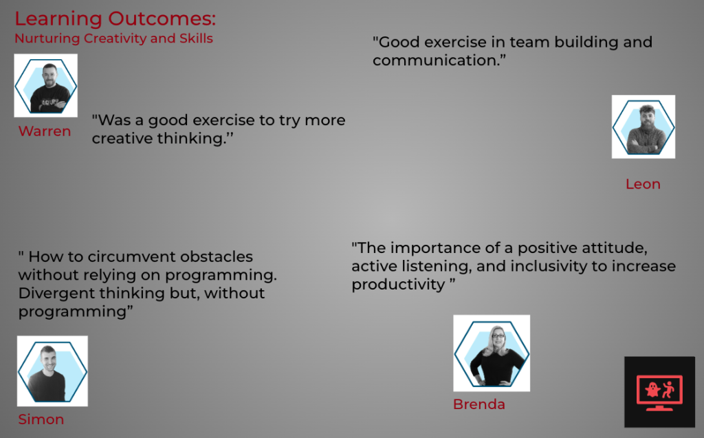 The Game Jam gave all team members the chance to work in a creative role and try out finding creative solutions to different problems.   It was an interesting experience to see where each person would fit into the new teams.